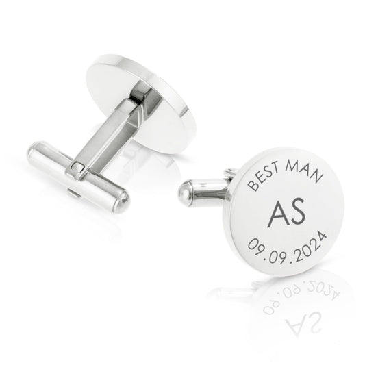 Personalised Engraved Round Cufflinks | Groomsman & Best Man with Date
