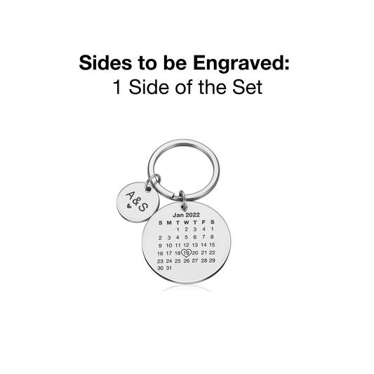 Personalised Engraved Round Metal Calendar Keyring Gift with Round Charms | Special Date Highlighted with a Heart
