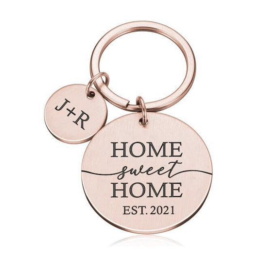 Personalised "Our First Home" round Metal Keyring – New Home or Wedding Gift