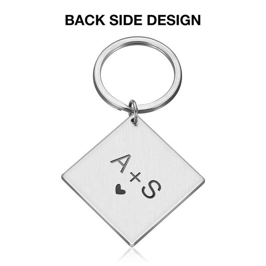 Personalised engraved square metal custom alphabet initial keyring