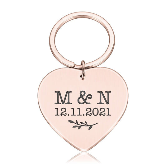 Personalised heart shape metal keyring with initials & date