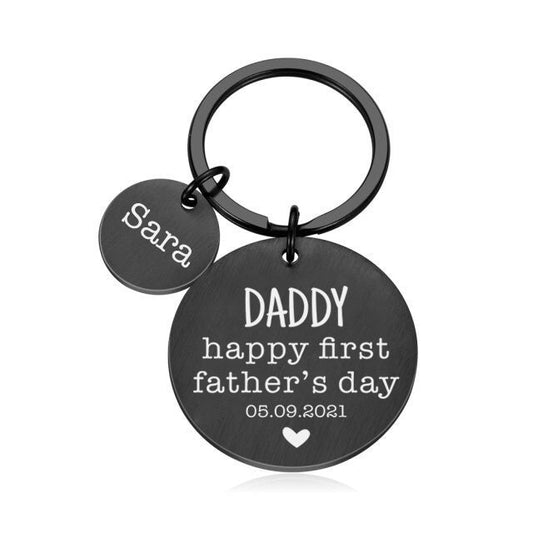 Personalised Engraved Round Metal Keyring Gift With Round Charms | Happy First Father's Day Dad