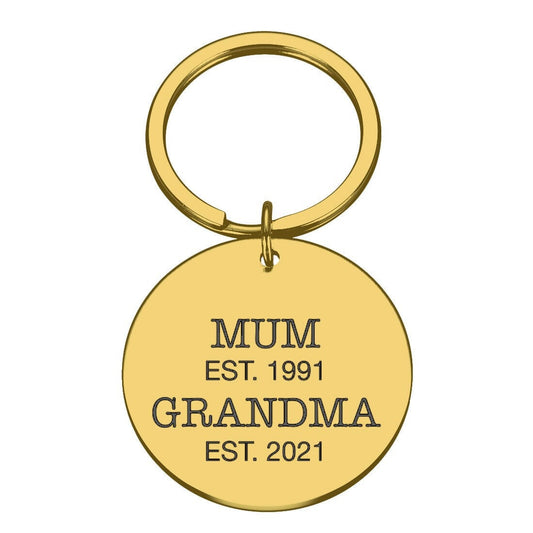 Personalised engraved round metal keyrin with "Mum est." "Grandma Est."Regular price $34.99 AUDRegular priceUnit price / per-