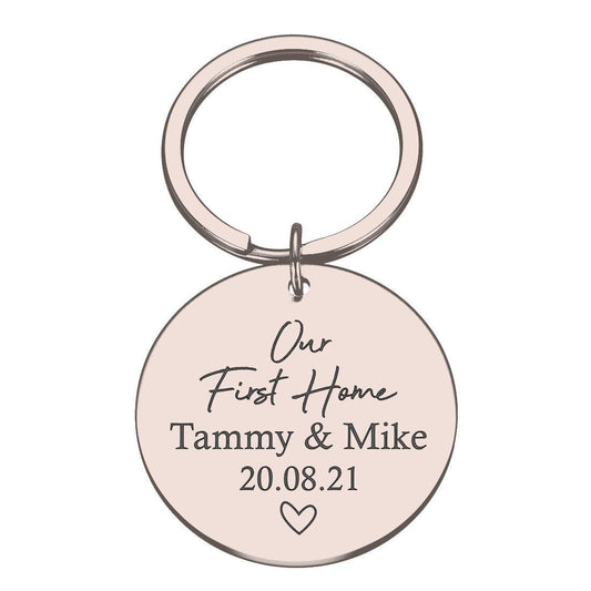 Personalised "Our First Home" round Metal Keyring – New Home or Wedding Gift